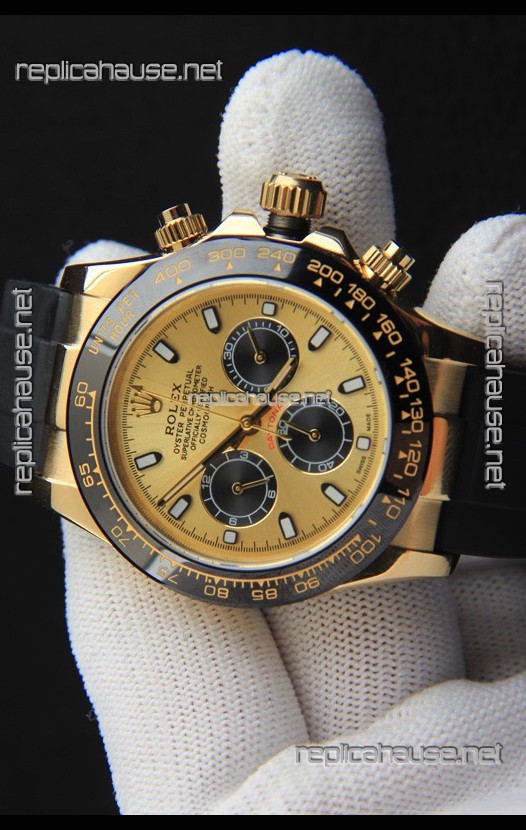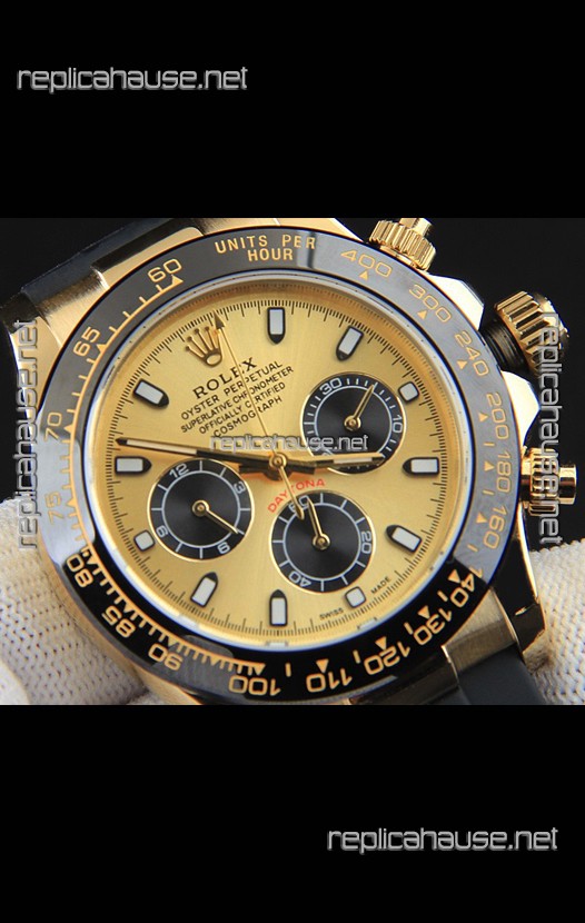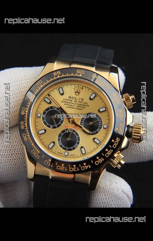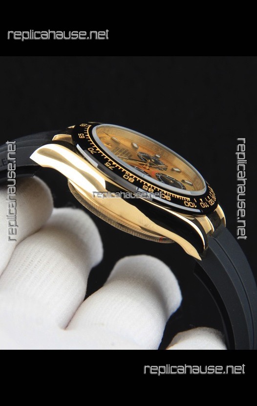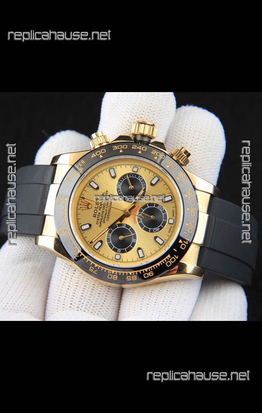 Rolex Daytona Japanese Movement Gold Casing Replica Watch in Gold Dial