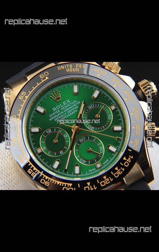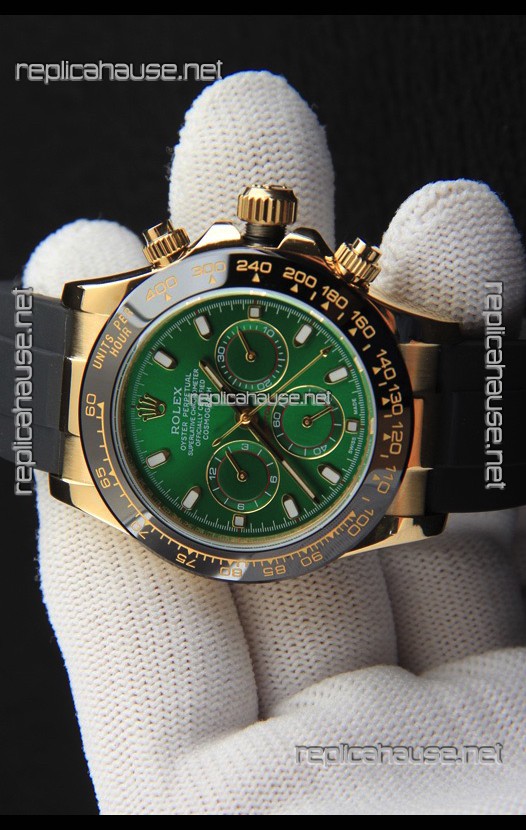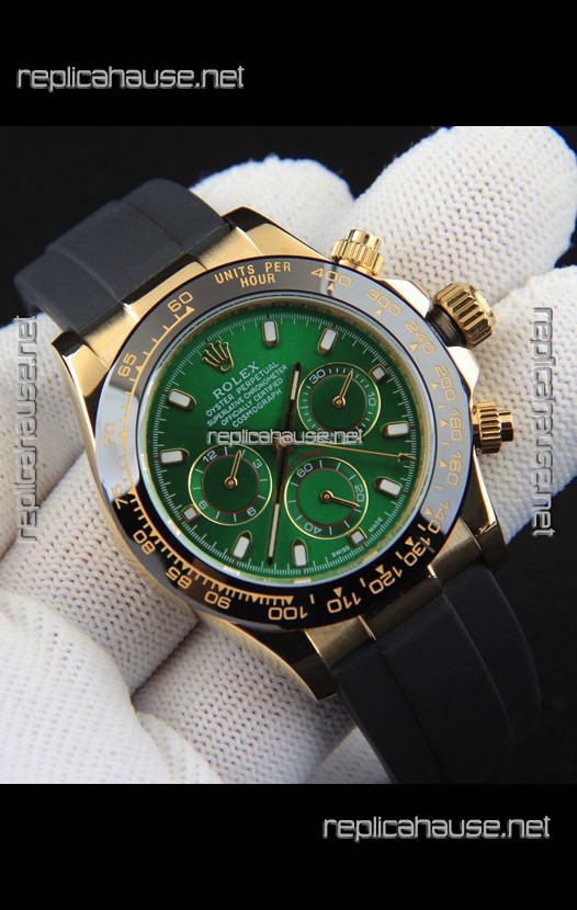 Rolex Daytona Japanese Movement Gold Casing Replica Watch in Green Dial