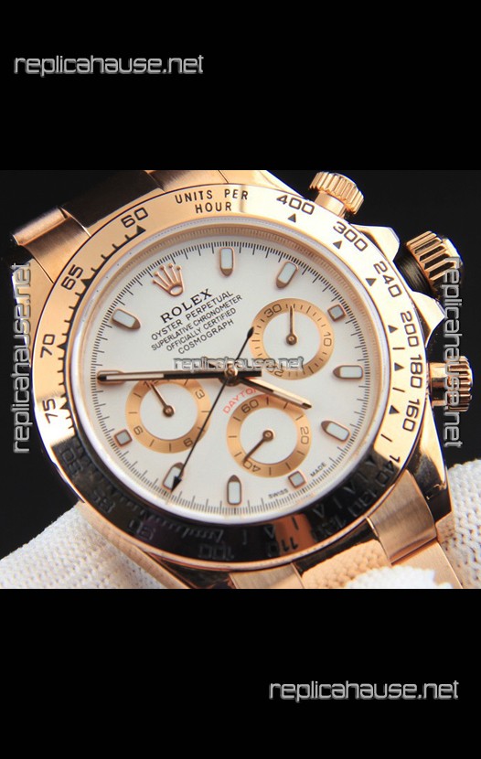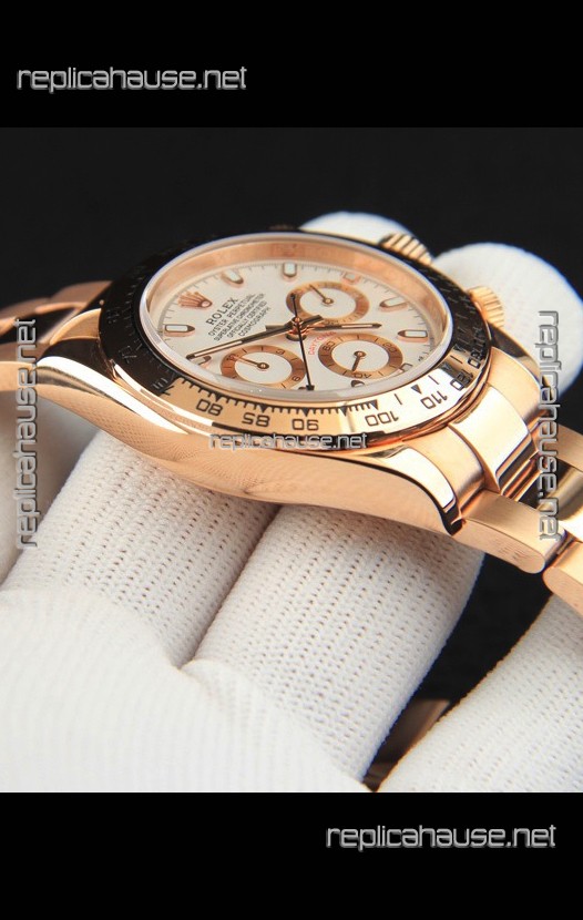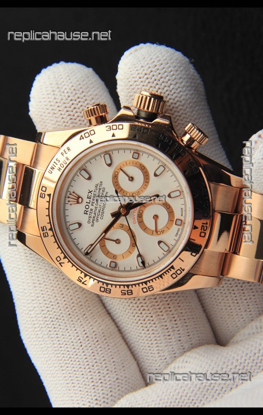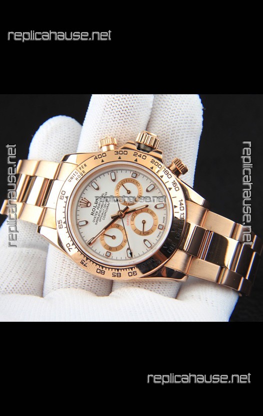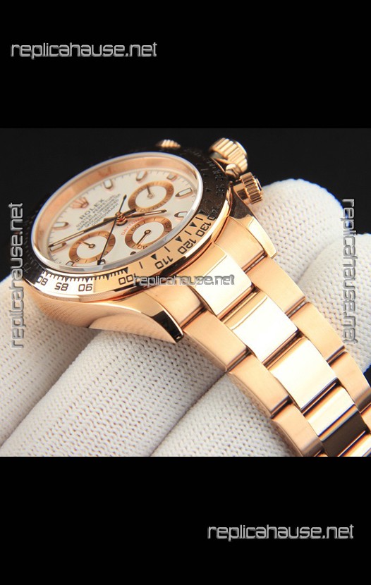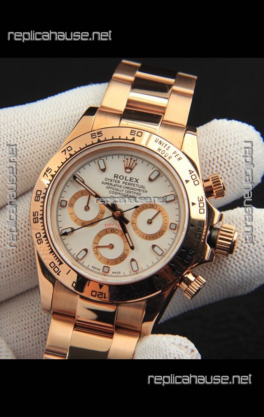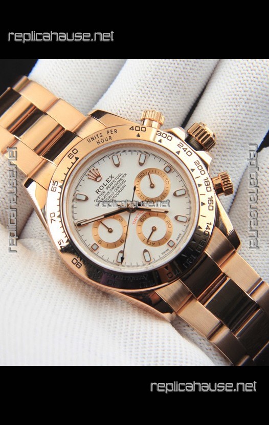 Rolex Daytona Japanese Movement Gold Casing Replica Watch in White Dial