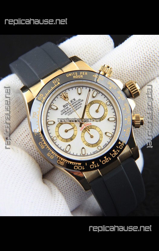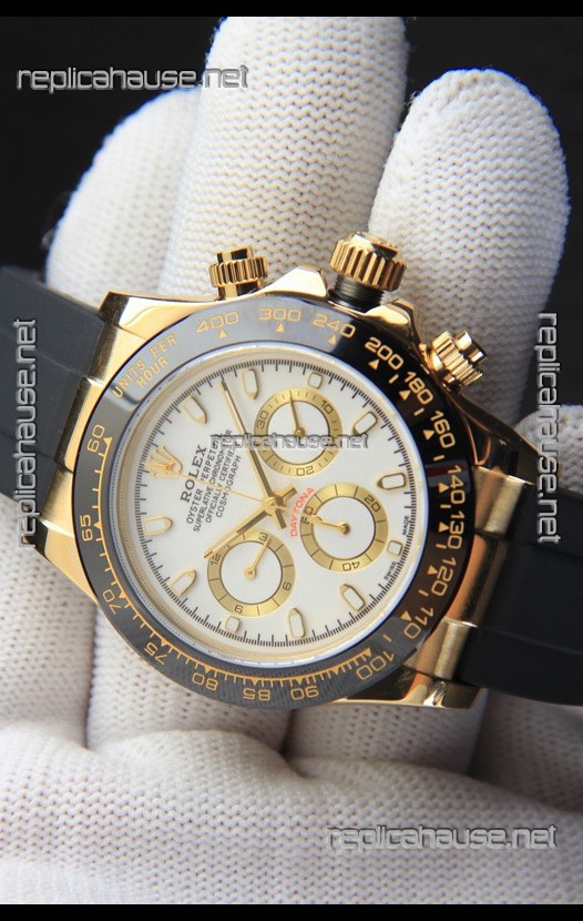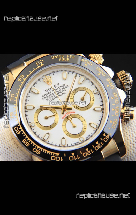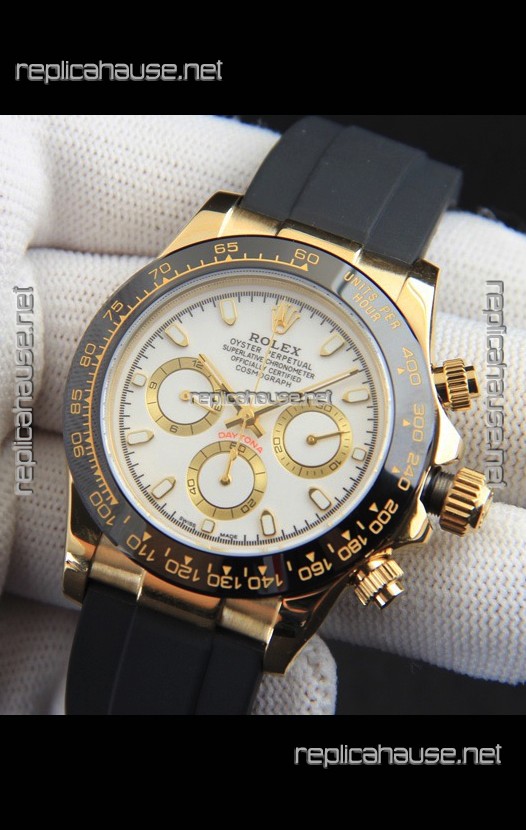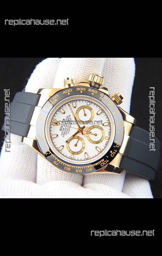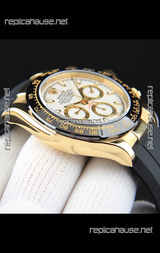Rolex Daytona Japanese Movement Gold Casing Replica Watch in White Dial