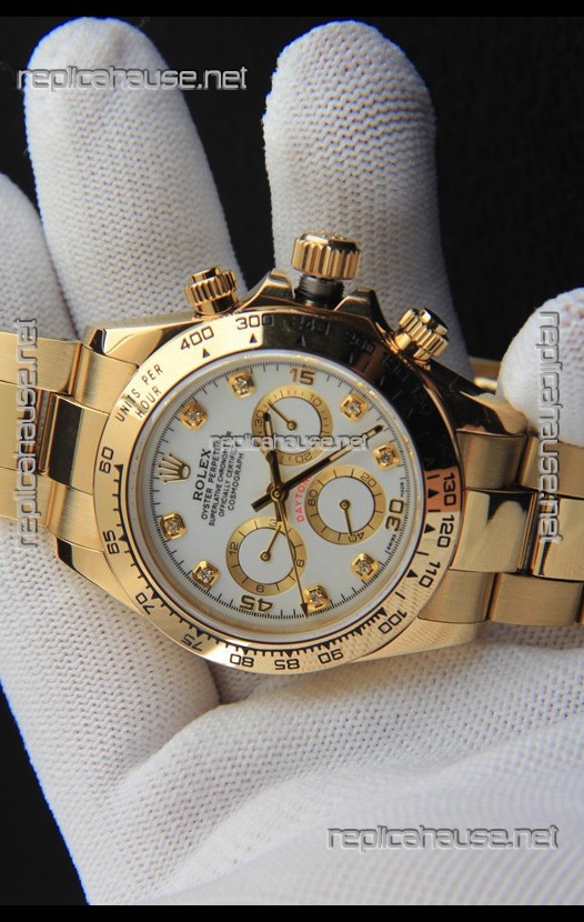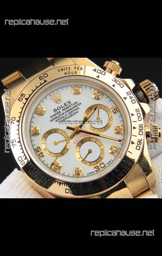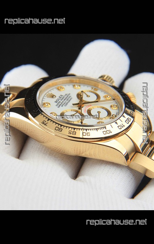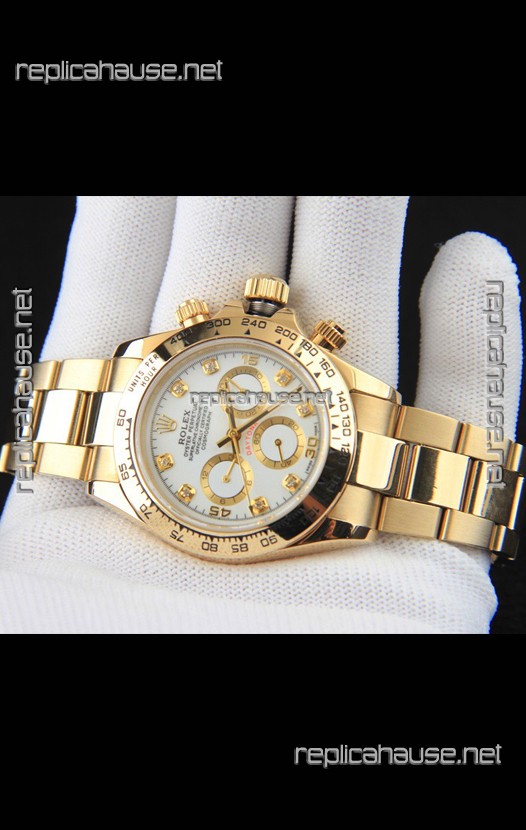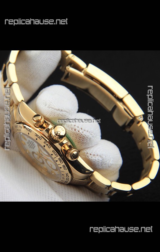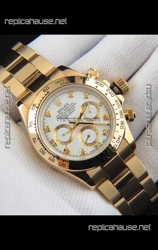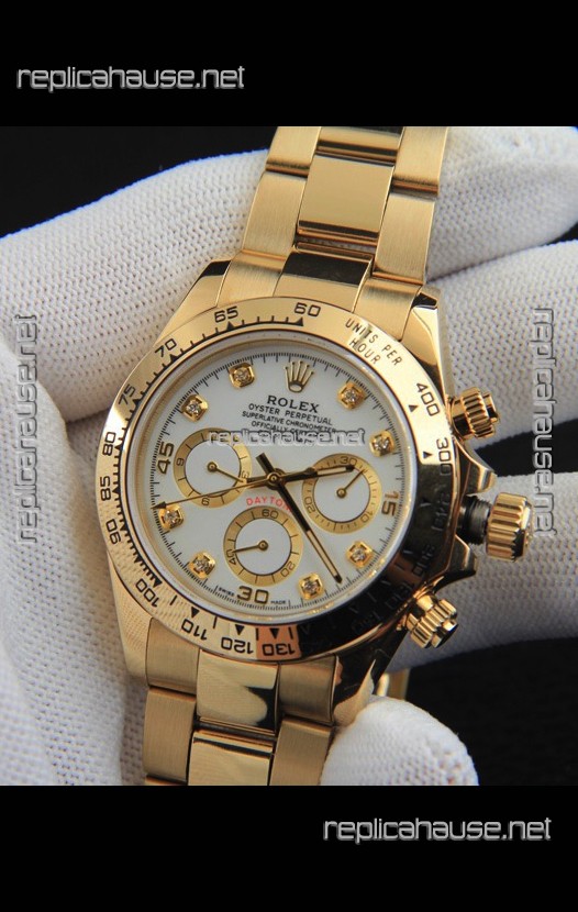 Rolex Daytona Japanese Movement Gold Casing Replica Watch in White Dial
