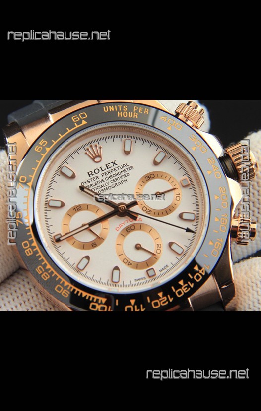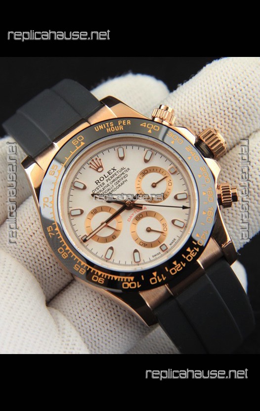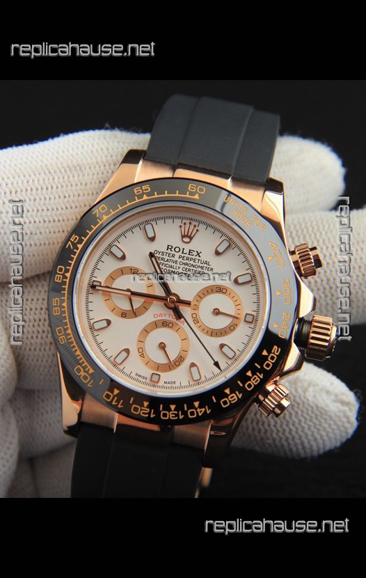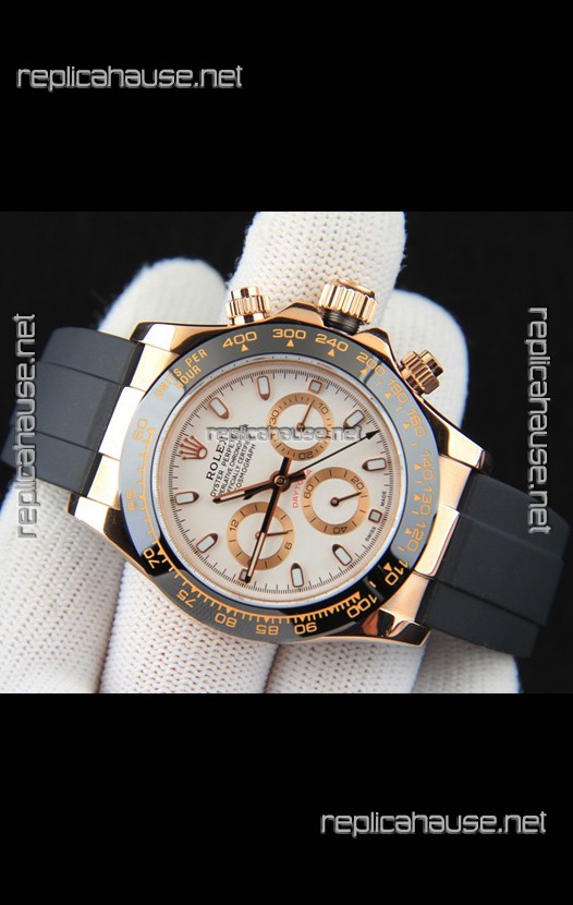 Rolex Daytona Japanese Movement Gold Casing Replica Watch in White Dial
