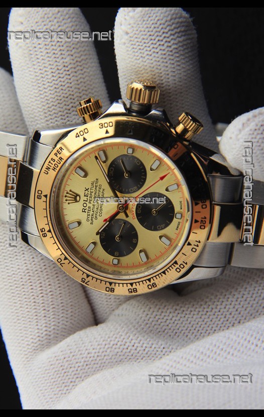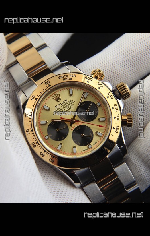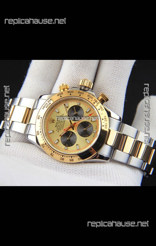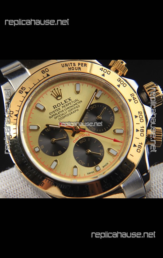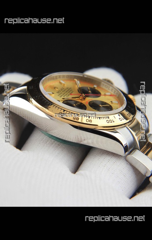 Rolex Daytona Japanese Movement Two Tone Gold Casing Watch in Gold Dial