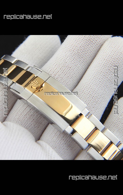Two Tone 18K Gold Plating on 904L Solid Stainless Steel Case with Rolex Markings and Engravings