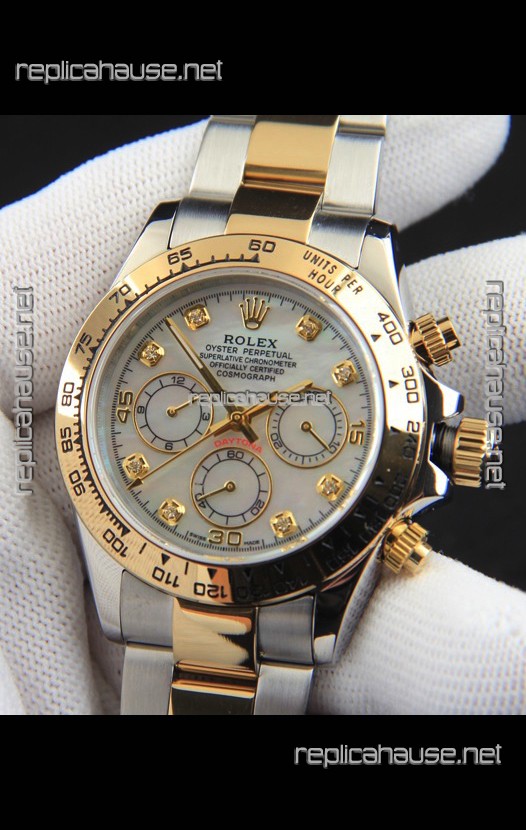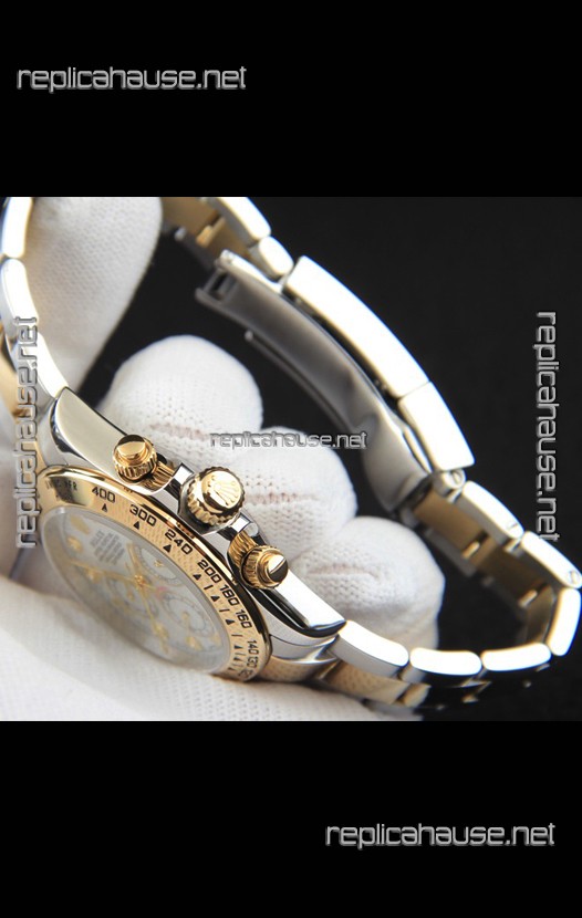 Rolex Daytona Japanese Movement Two Tone Gold Casing Watch in Pearl Dial