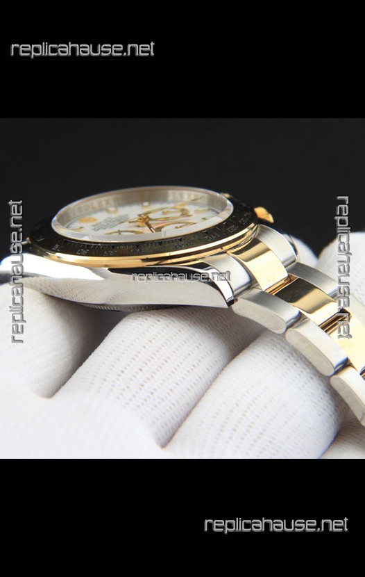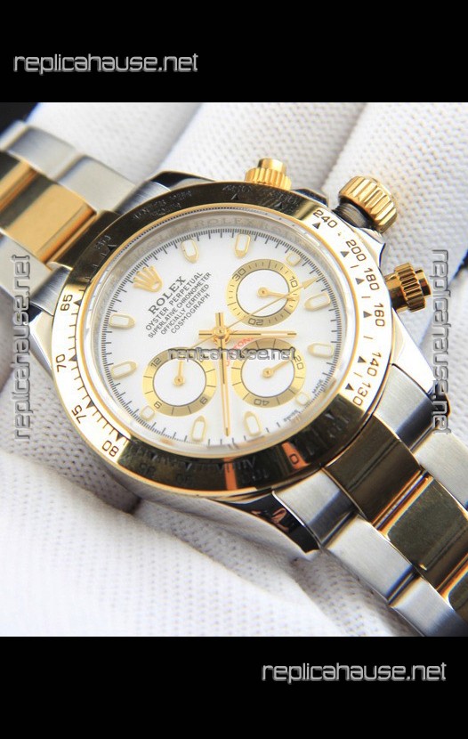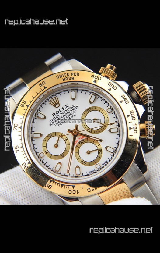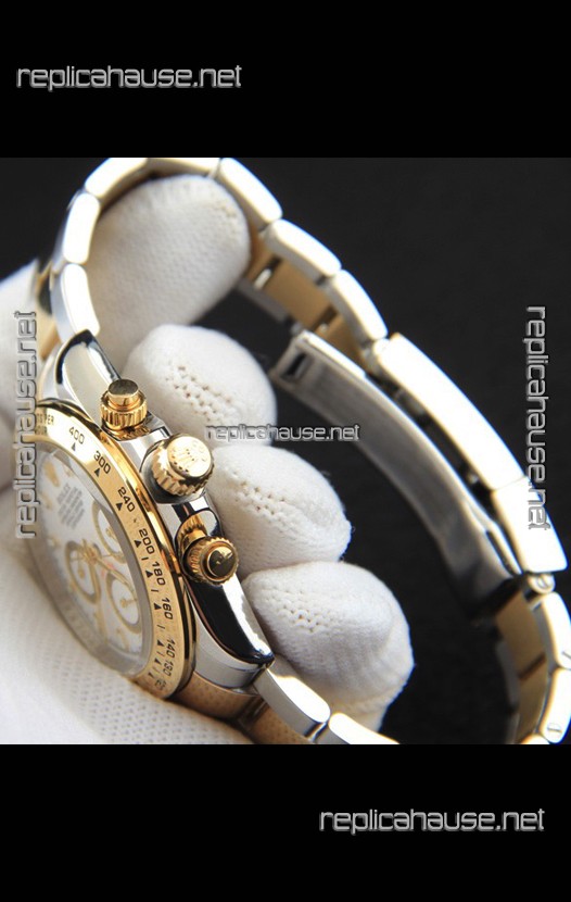 Rolex Daytona Japanese Movement Two Tone Gold Casing Watch in White Dial
