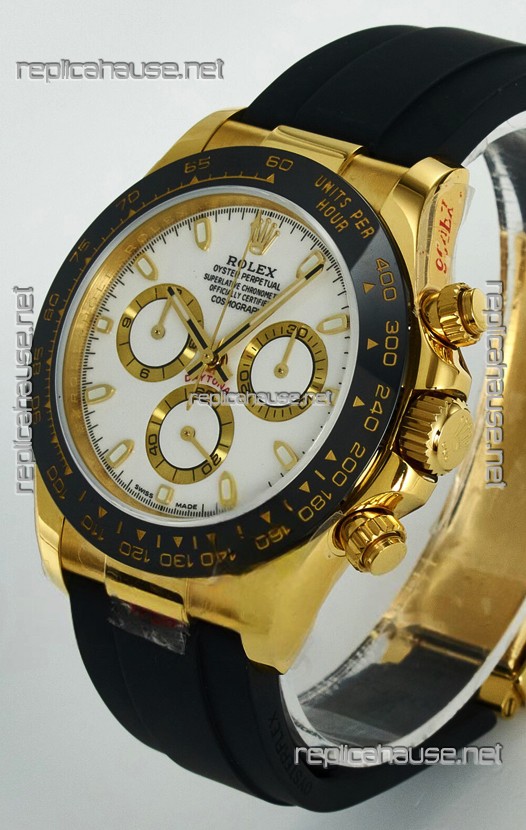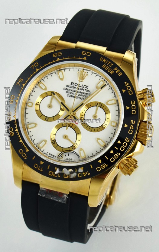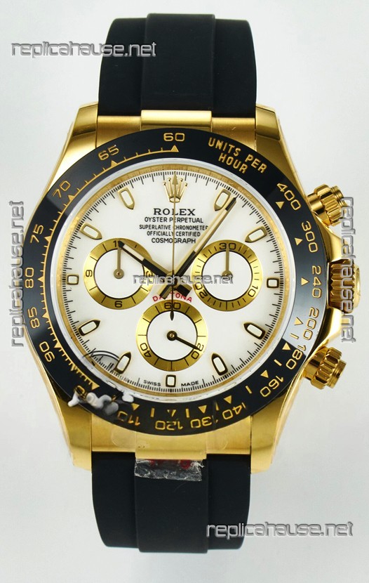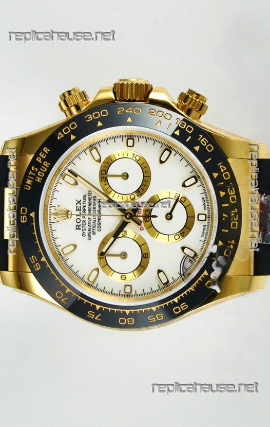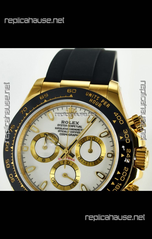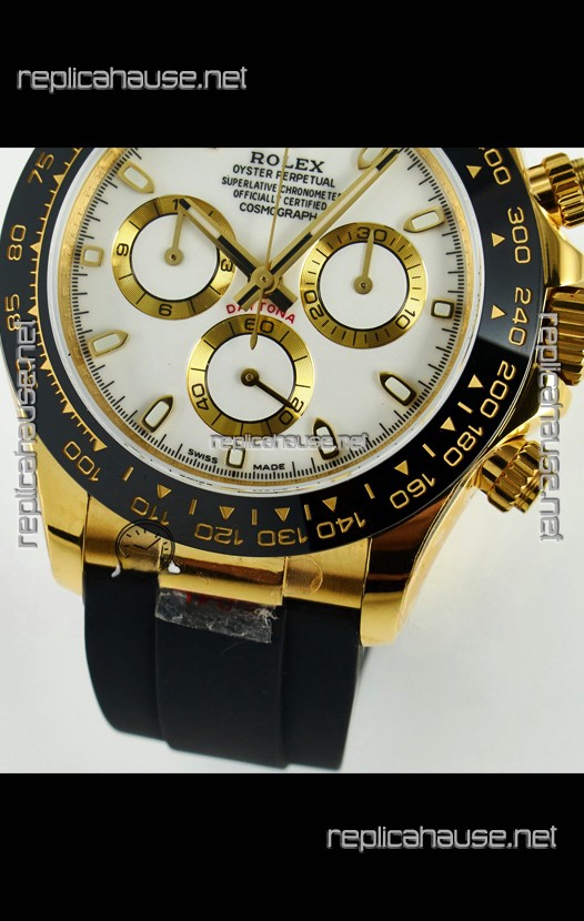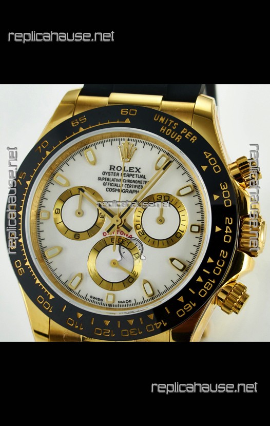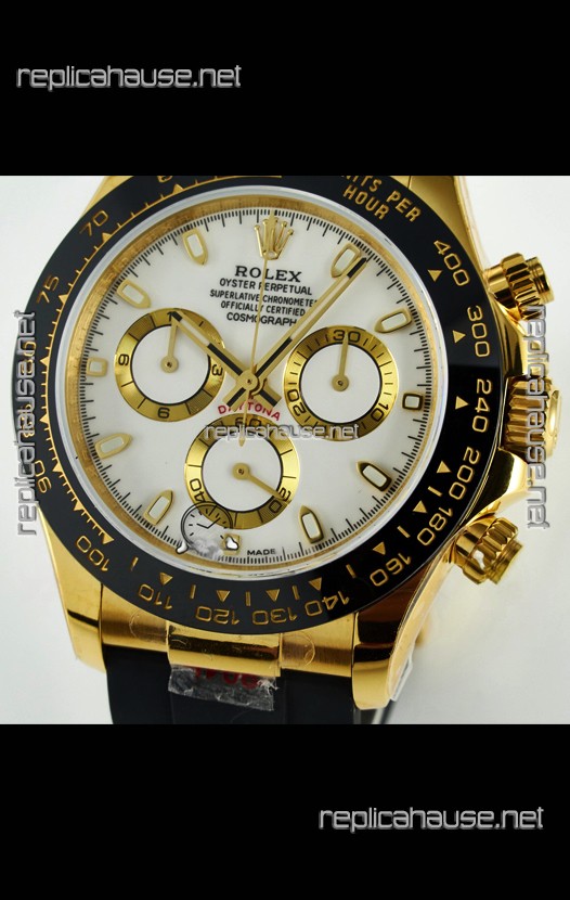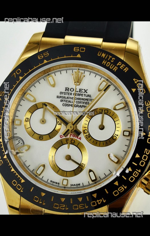 Rolex Daytona Super Clone 116518 Yellow Gold White Dial Original Cal.4130 Movement