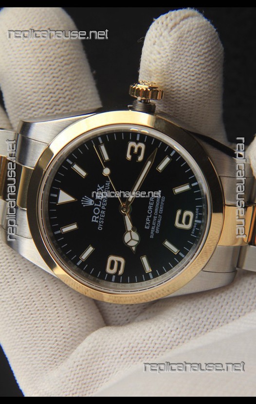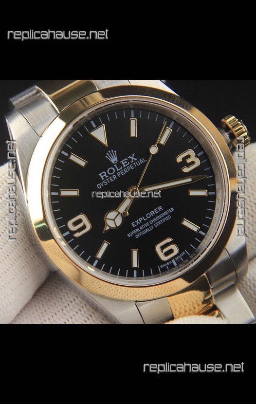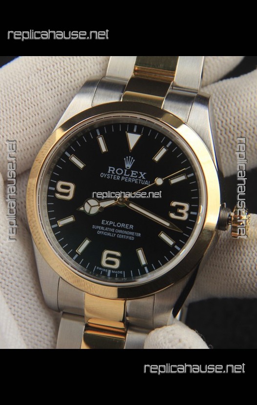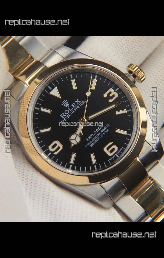 Rolex Explorer I Japanese Movement Replica Watch in Two Tone Black Dial 39MM