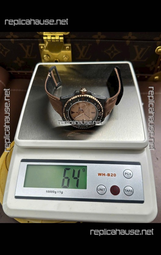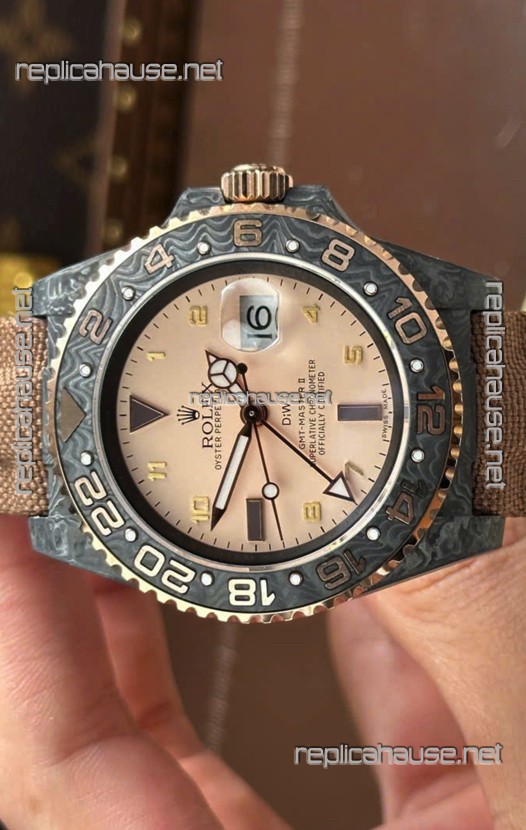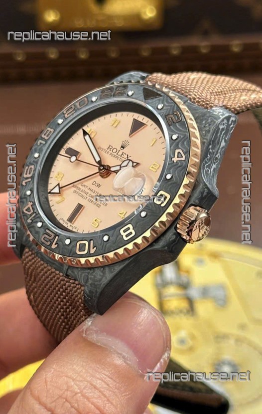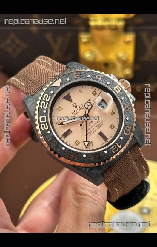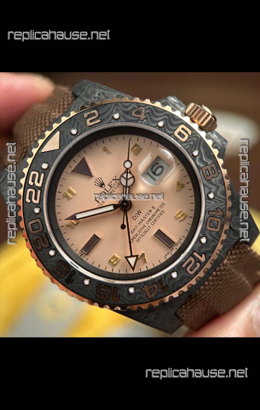 Rolex GMT Masters DiW Black Carbon Casing Swiss Replica Watch Beige Gray Dial