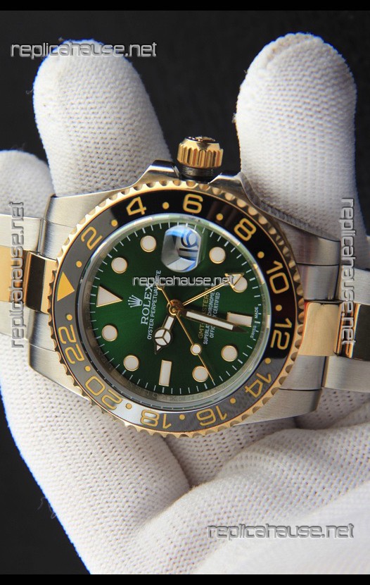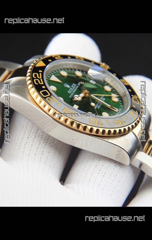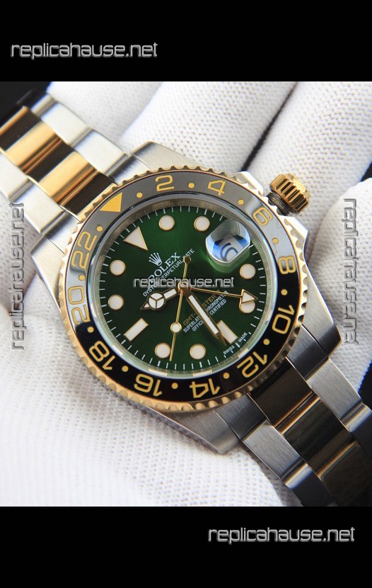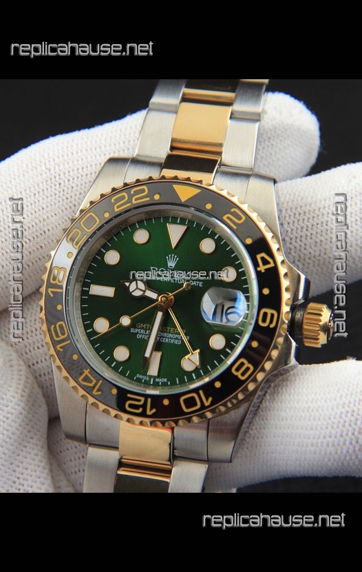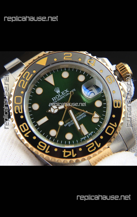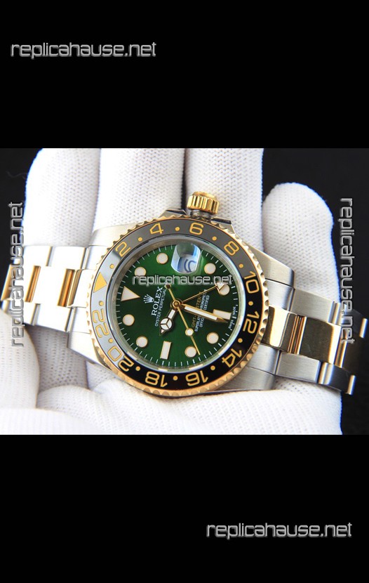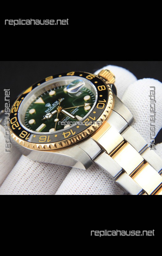 Rolex GMT Masters II 2 Tone Rose Gold Plating Japanese Replica Watch Green Dial