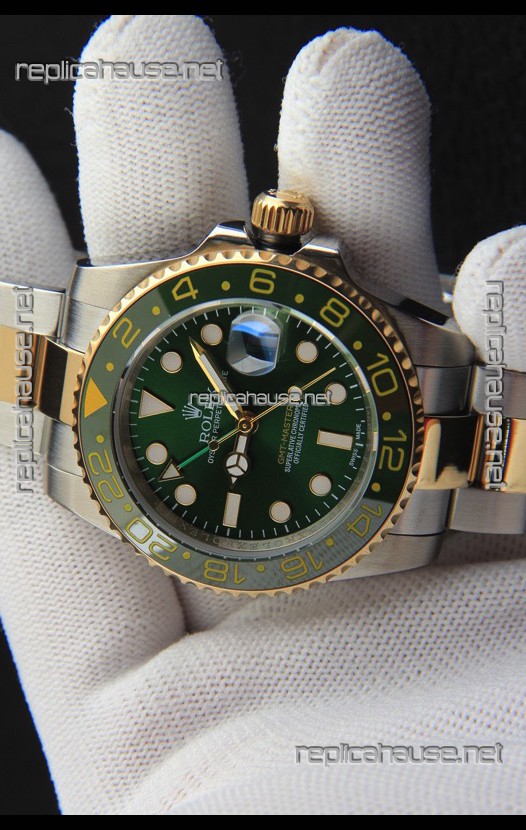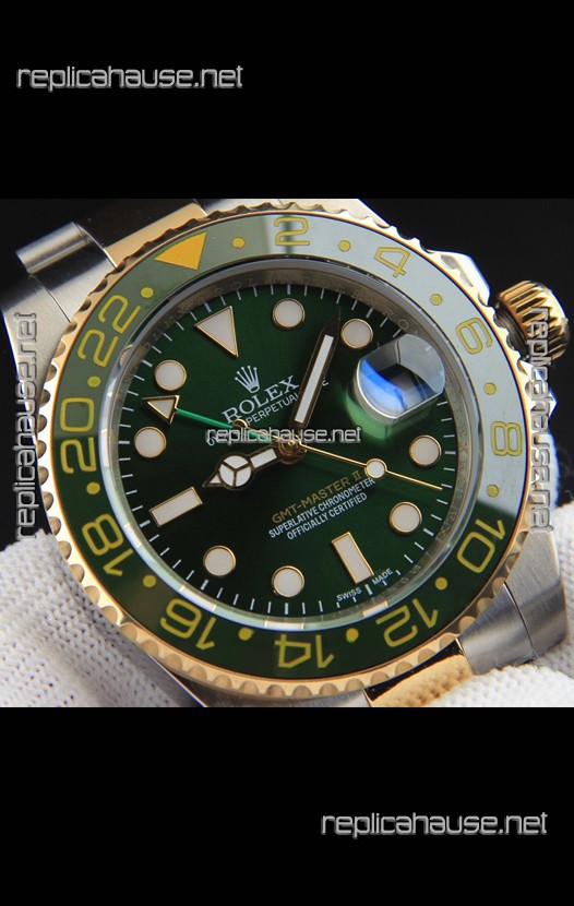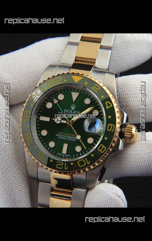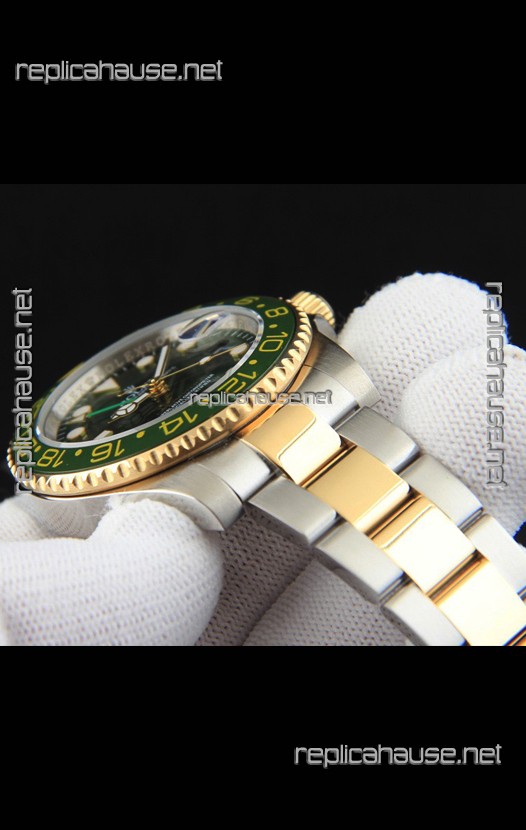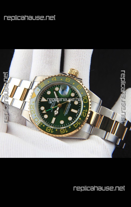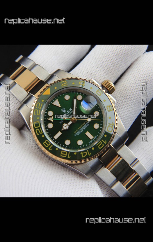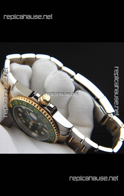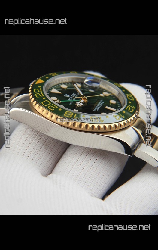 Rolex GMT Masters II 2 Tone Rose Gold Plating Japanese Replica Watch Green Dial