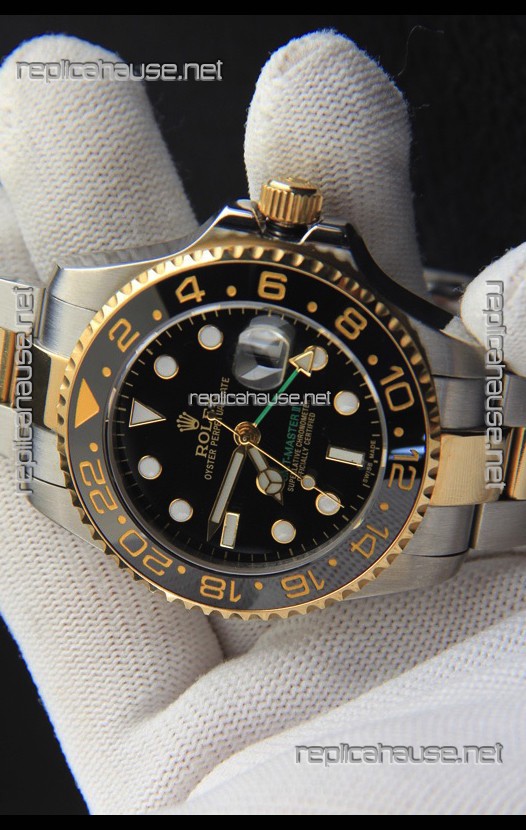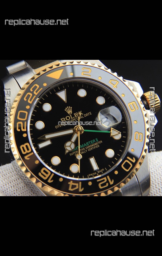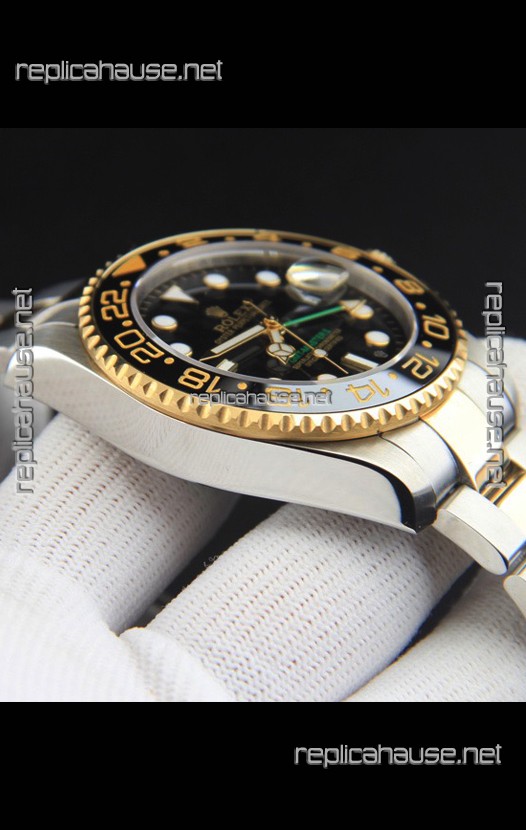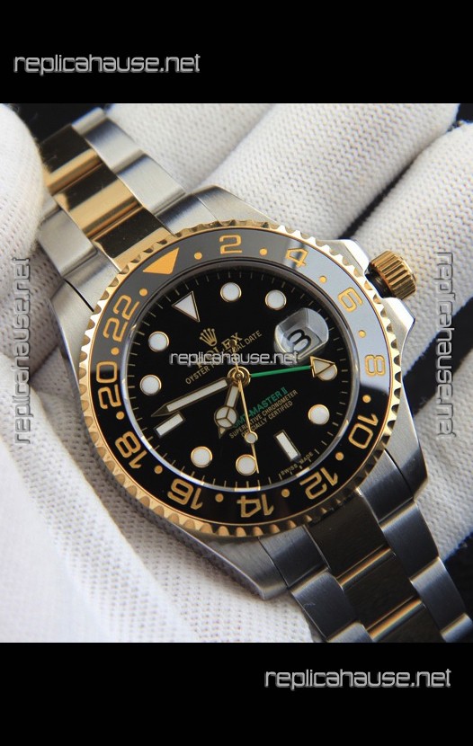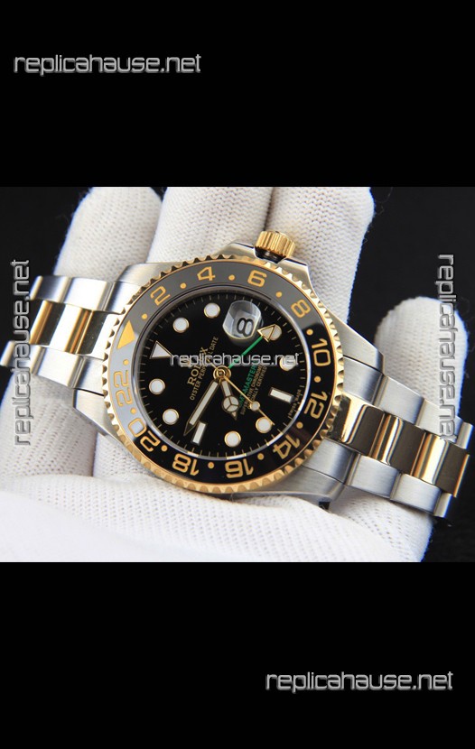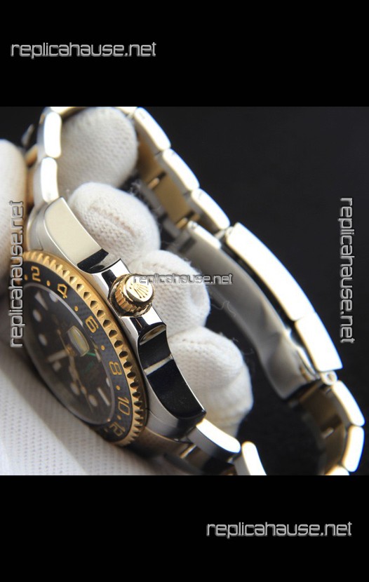 Rolex GMT Masters II Japanese Movement Replica Watch in Two Tone Black Dial