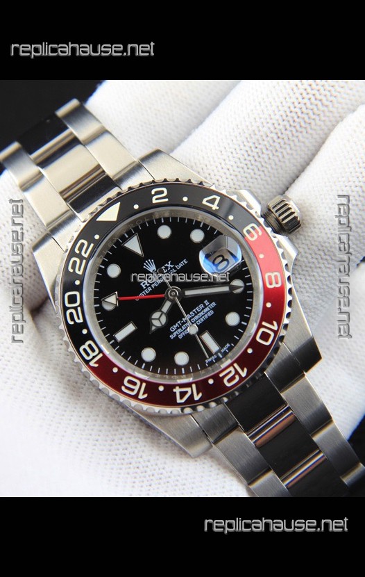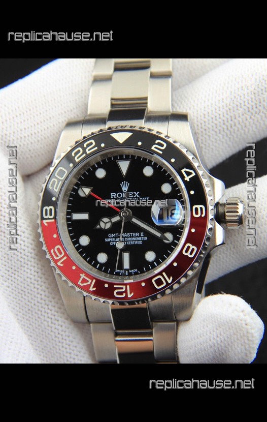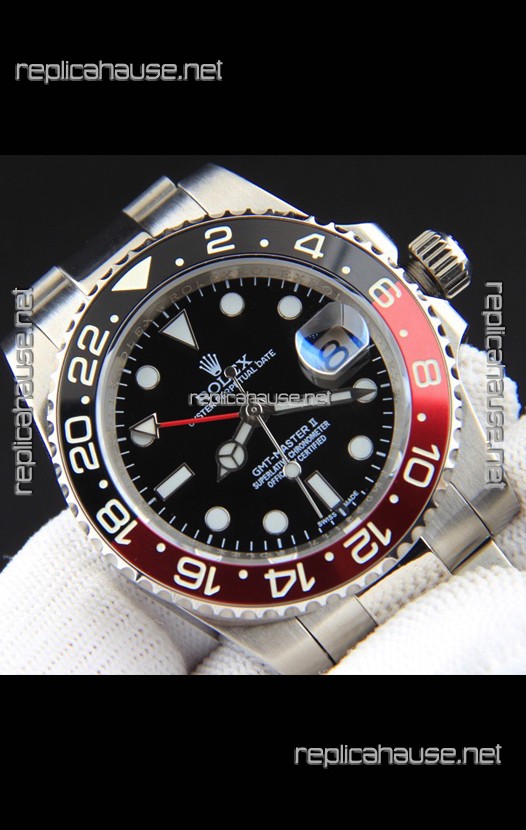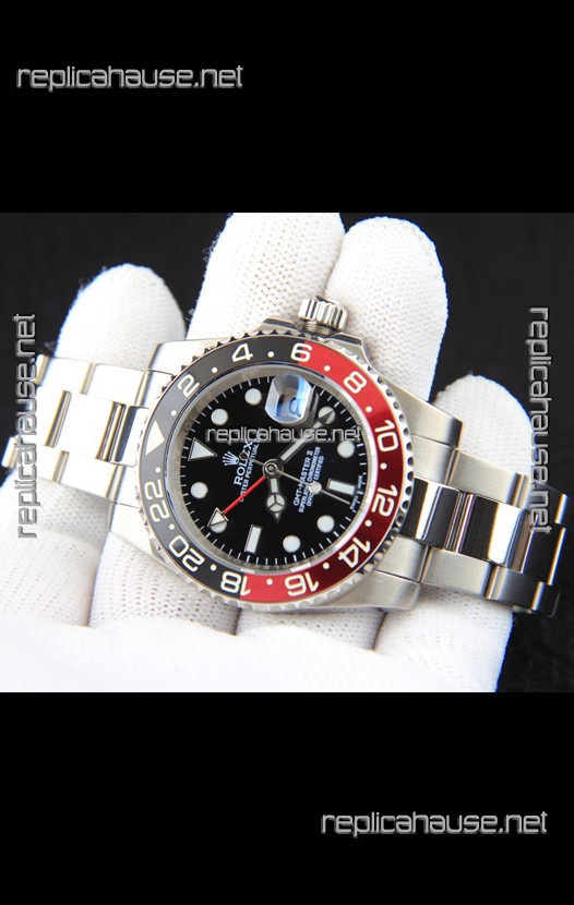 Rolex GMT Masters II Japanese Movement Replica Watch Steel Case Black Dial