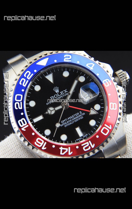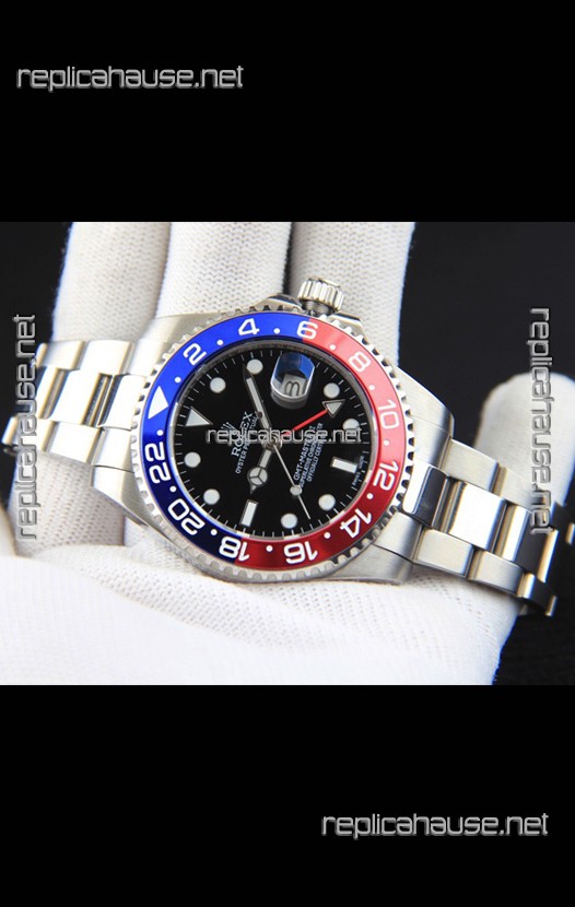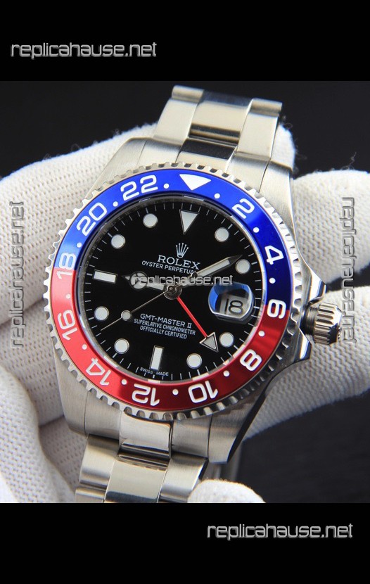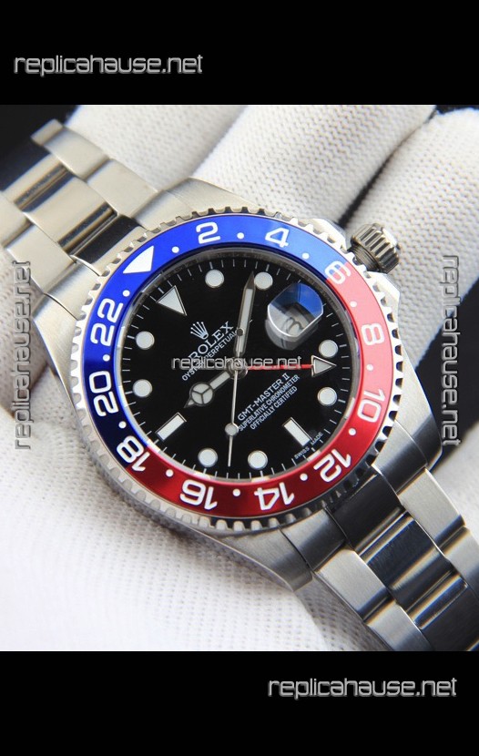 Rolex GMT Masters II Japanese Movement Replica Watch Steel Case Black Dial