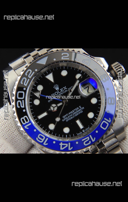 Rolex GMT Masters II Japanese Movement Replica Watch Steel Case Black Dial