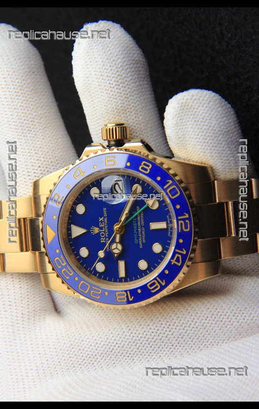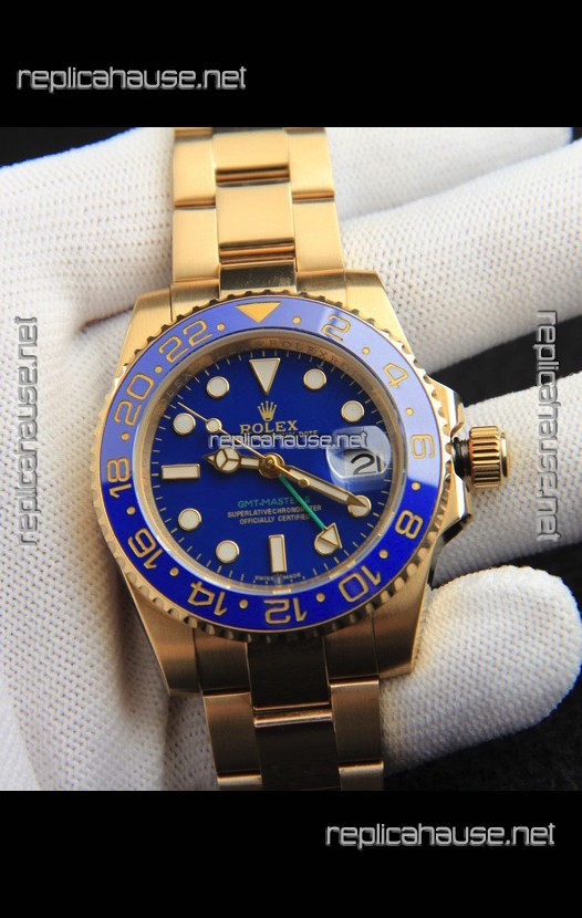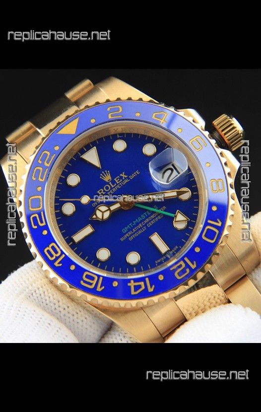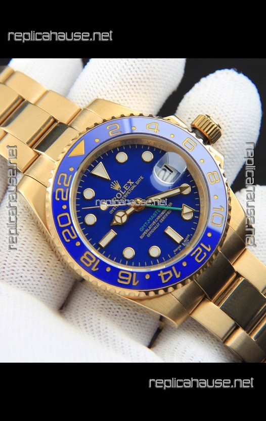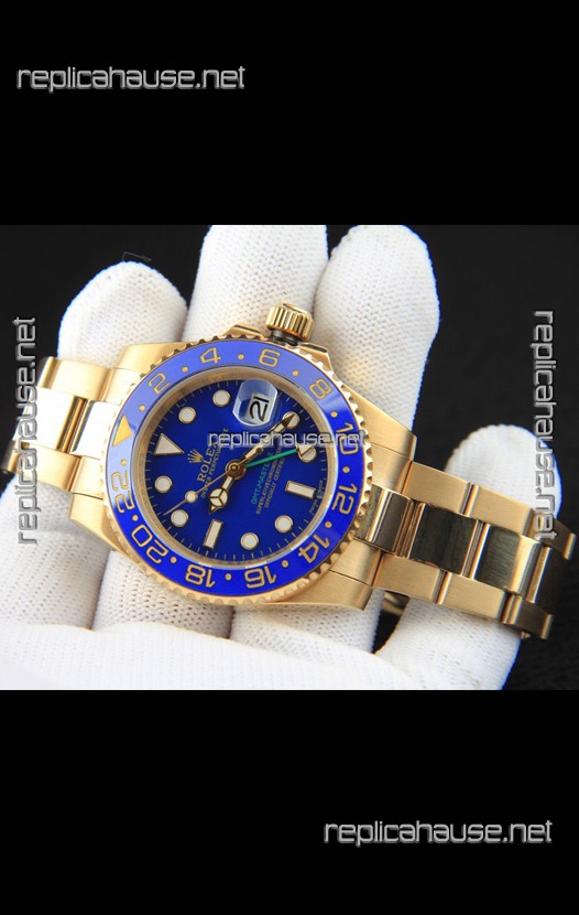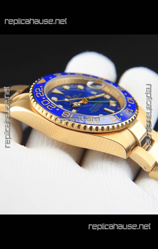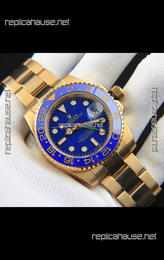 Rolex GMT Masters II Rose Gold Plating Japanese Replica Watch Blue Dial