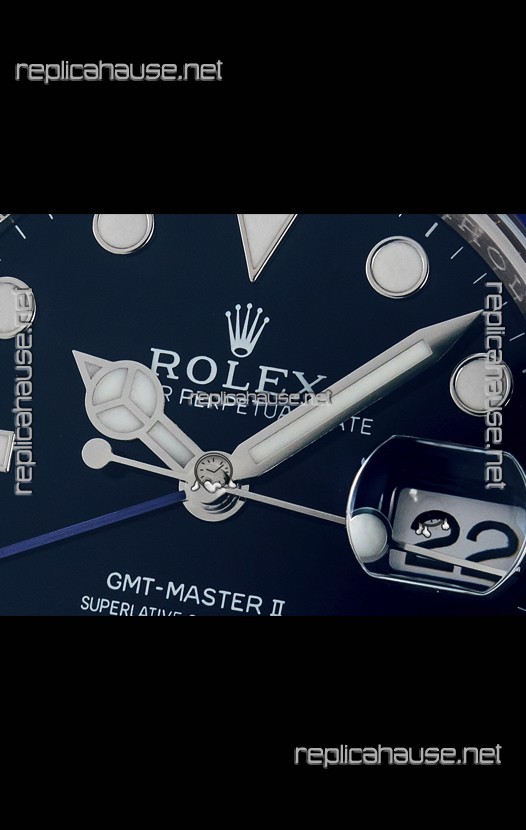 The Best Rolex GMT Model Replicated up to Date. The First Rolex model to adopt a 904L Steel on Casing and Strap which is the same steel used by Rolex.