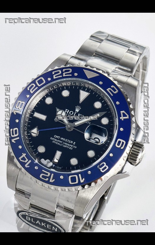 Rolex GMT Masters II Super Clone 126716 "Blaken" 904L Steel Blue Dial Watch