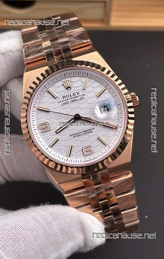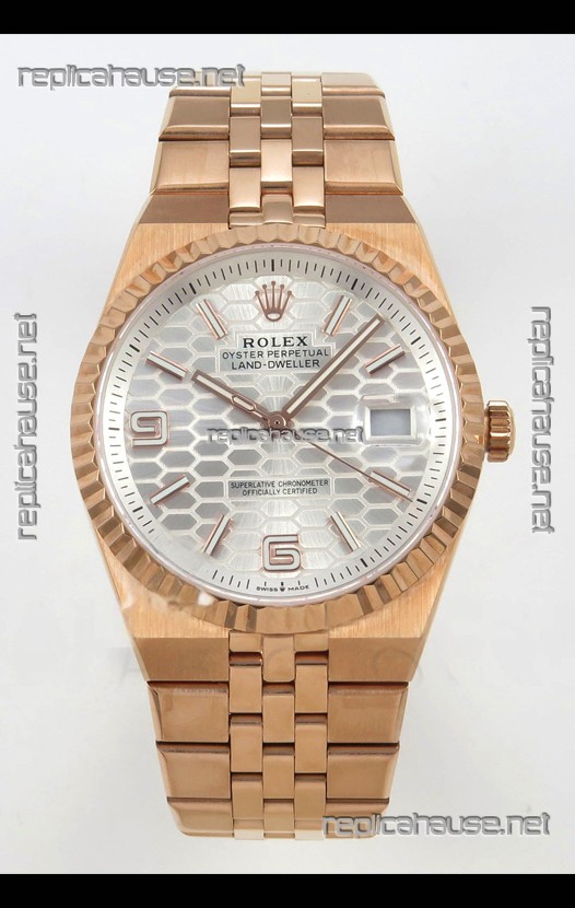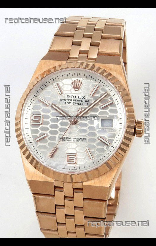 Rolex Land-Dweller 127335 Steel Honeycomb Rose Gold 40MM Swiss Replica Watch