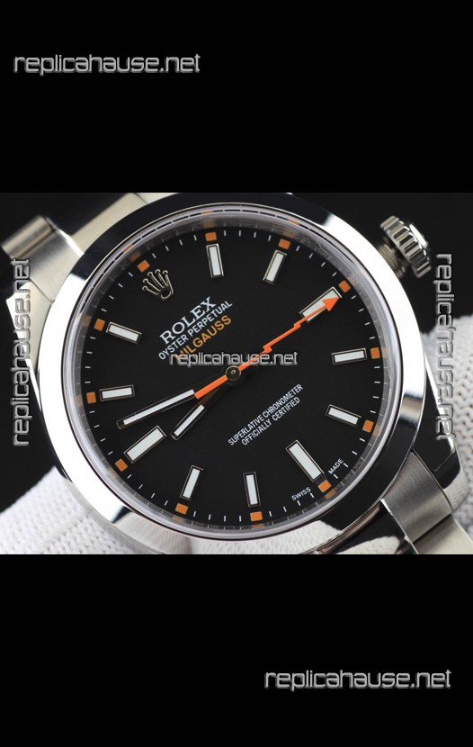 Rolex Milgauss Japanese Movement Replica Watch in Black Dial