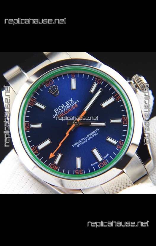 Rolex Milgauss Japanese Movement Replica Watch in Blue Dial