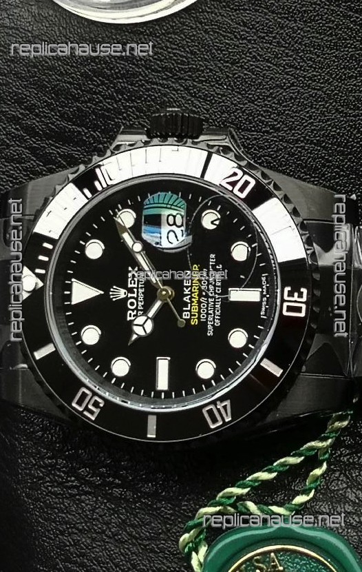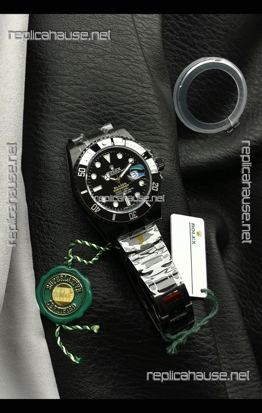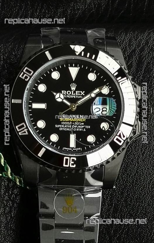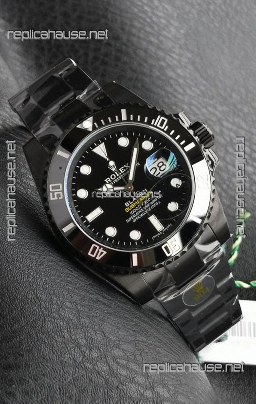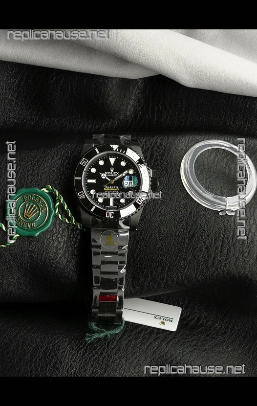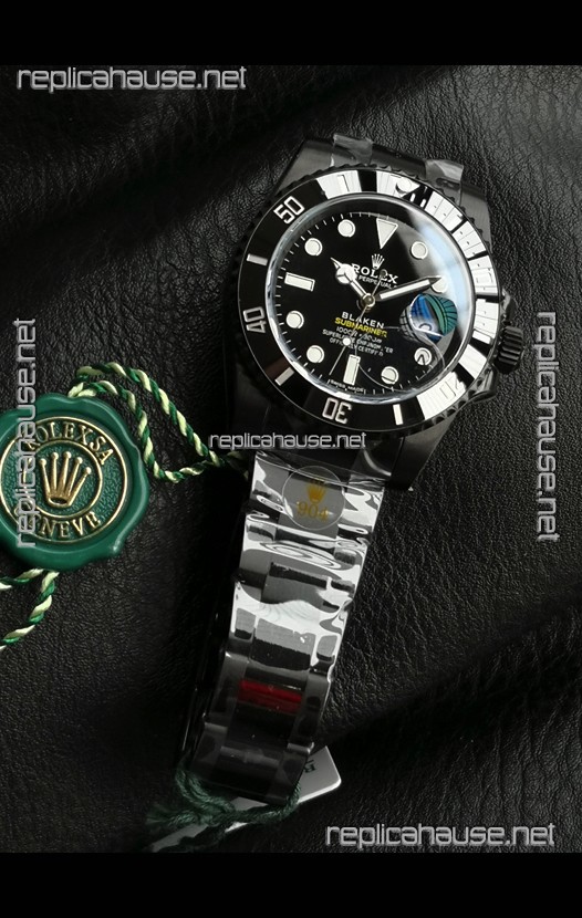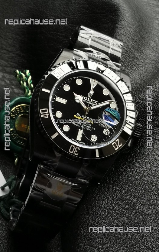 Rolex Submariner Blaken DLC Coated Swiss Replica Watch in Black Dial
