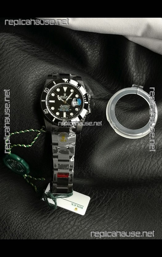 Rolex Submariner Blaken DLC Coated Swiss Replica Watch in Black Dial