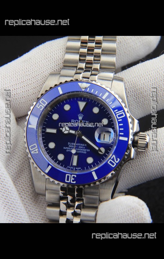 Rolex Submariner Japanese Replica Watch 904L Steel - Ceramic Bezel in Blue