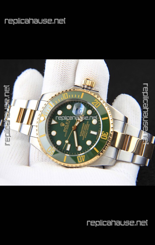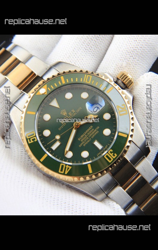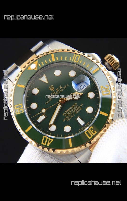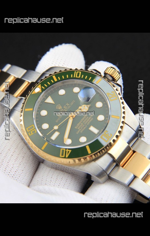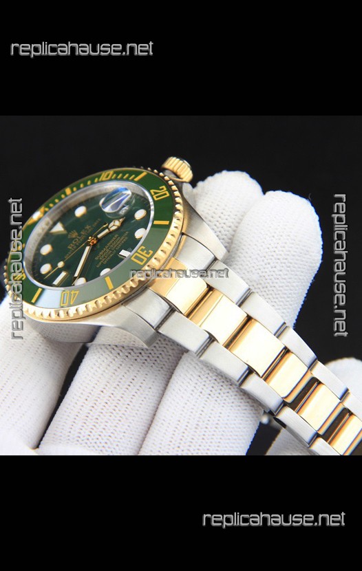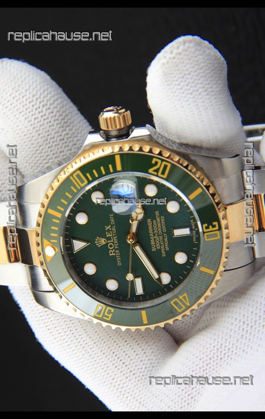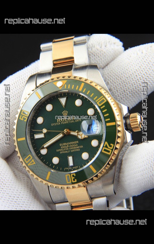 Rolex Submariner Japanese Replica Watch in 2 Tone Yellow Gold Casing Green Dial