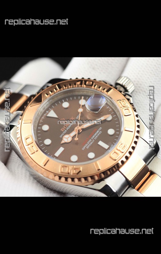 Rolex Yachtmaster Japanese Movement Watch in Two Tone Gold Casing - Light Brown dial 37MM
